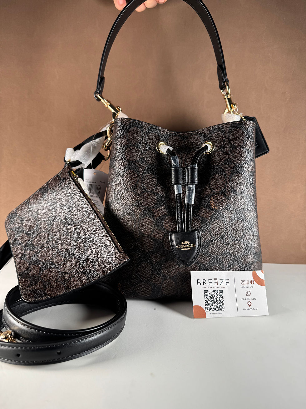 Mollie Bucket Coach Grande Canvas Marrón Negro